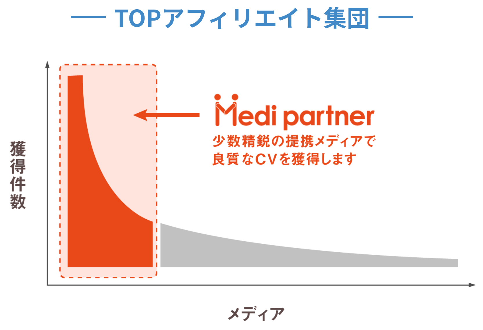 メディパートナーでは、各カテゴリ上位20%のトップアフィリエイターと提携しています。