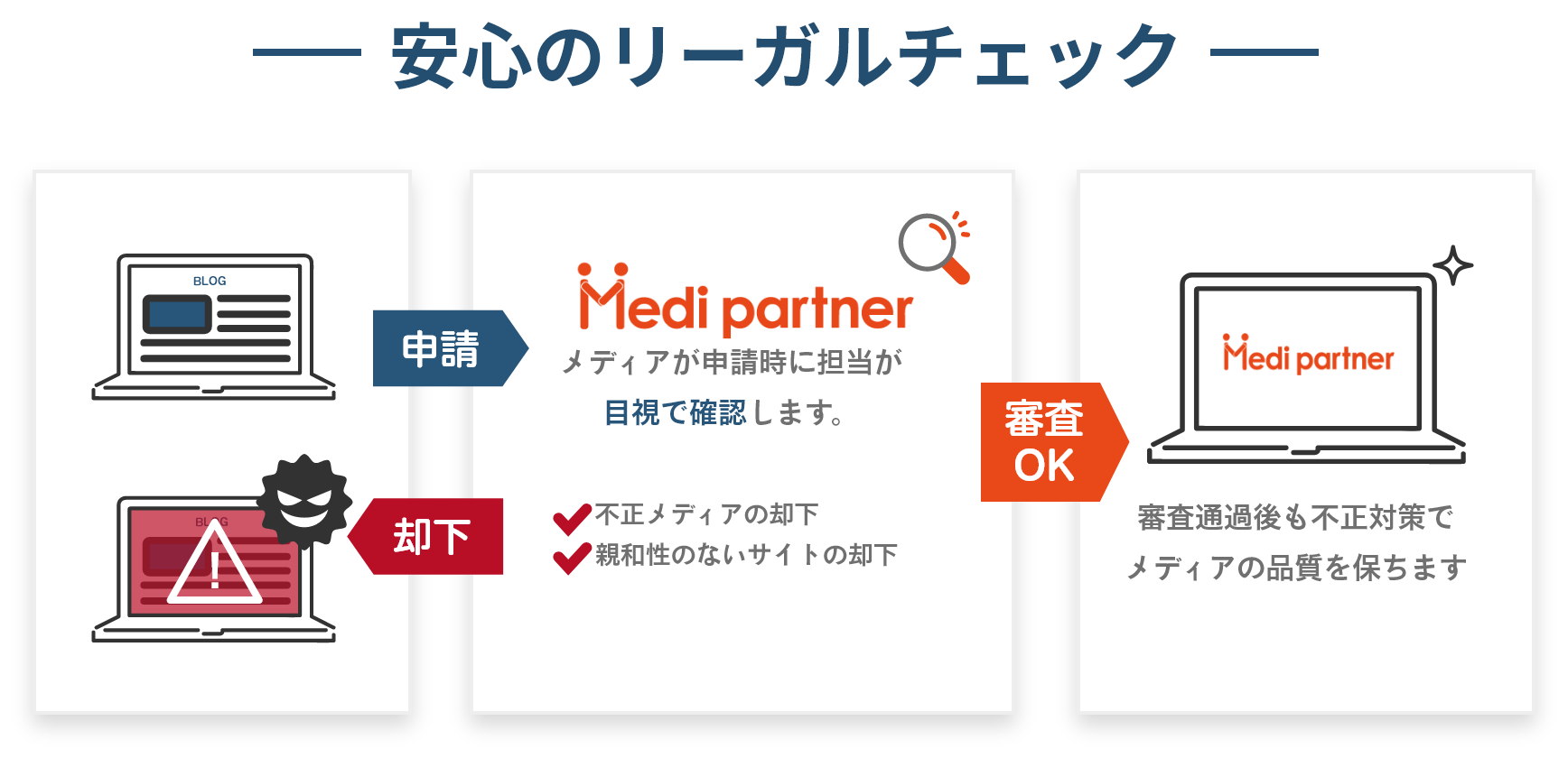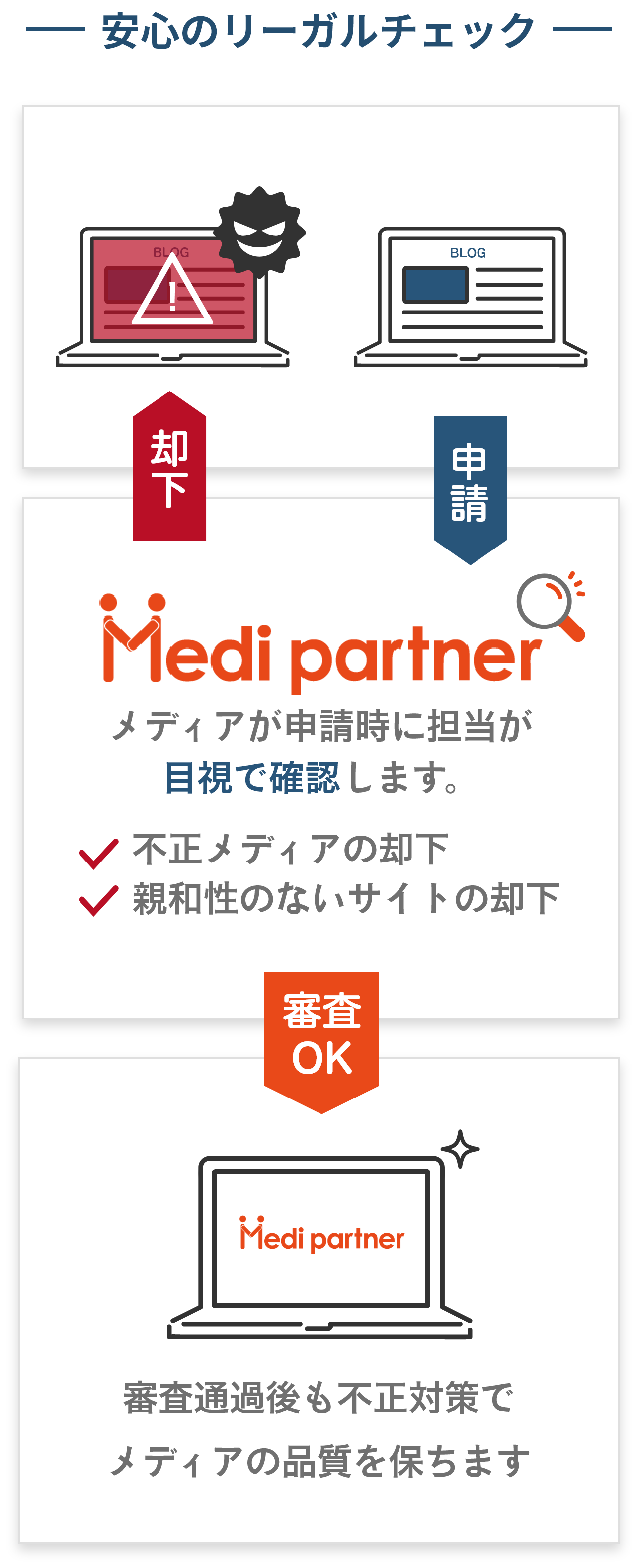 また、広告掲載前に必ず弊社担当者による目視確認を行ったうえで、広告主へ掲載の可否を判断してもらうため、