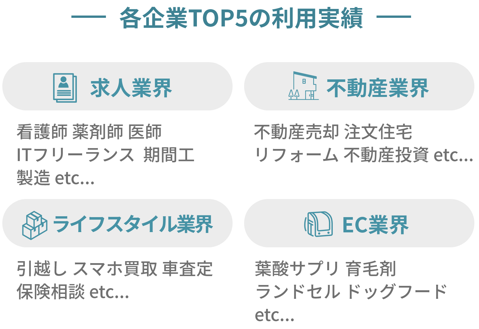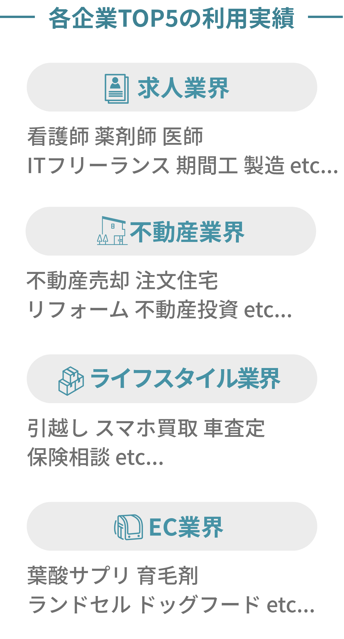 また、一般的な成果報酬体系での集客支援はもちろん、業界動向を把握したカスタムプランの提案も行います。